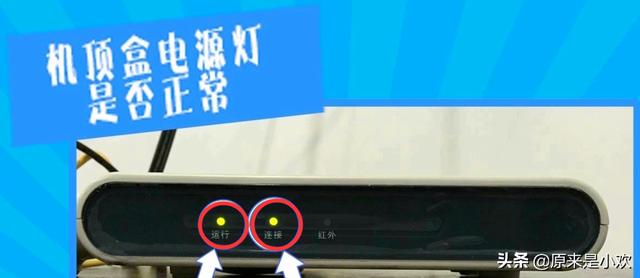2.点击机顶盒电源按钮重启机顶盒,待机顶盒信号稳定后,查看机顶盒电源灯是否正常(机顶盒运行灯、连接灯正常应为绿色)。